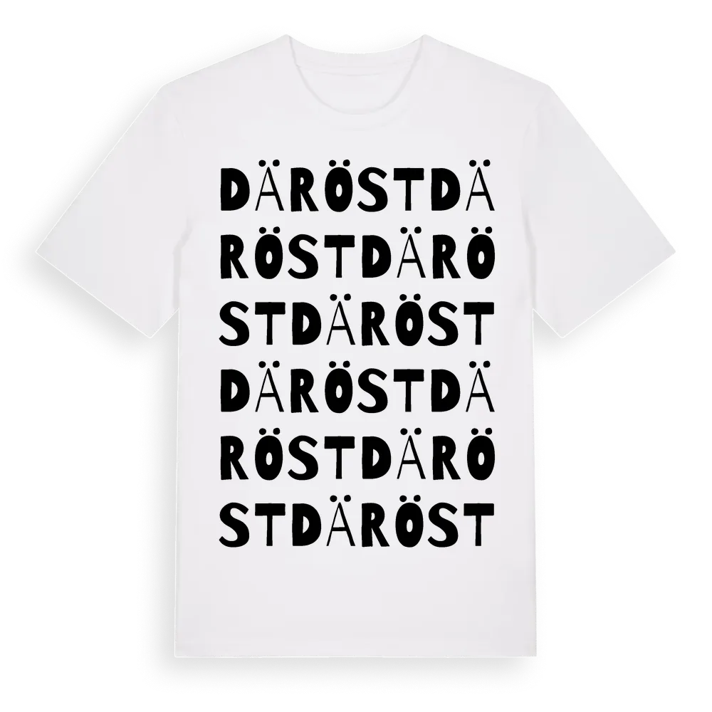 Däröst ordlek t-shirt är inspirerad av Däröst i Värmlands län, Sverige. Tröjan är designad för dig som har en speciell koppling till platsen – oavsett om du bor här, har rötterna här eller bara älskar Däröst.