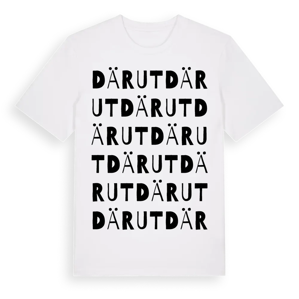Därut ordlek t-shirt är inspirerad av Därut i Värmlands län, Sverige. Tröjan är designad för dig som har en speciell koppling till platsen – oavsett om du bor här, har rötterna här eller bara älskar Därut.
