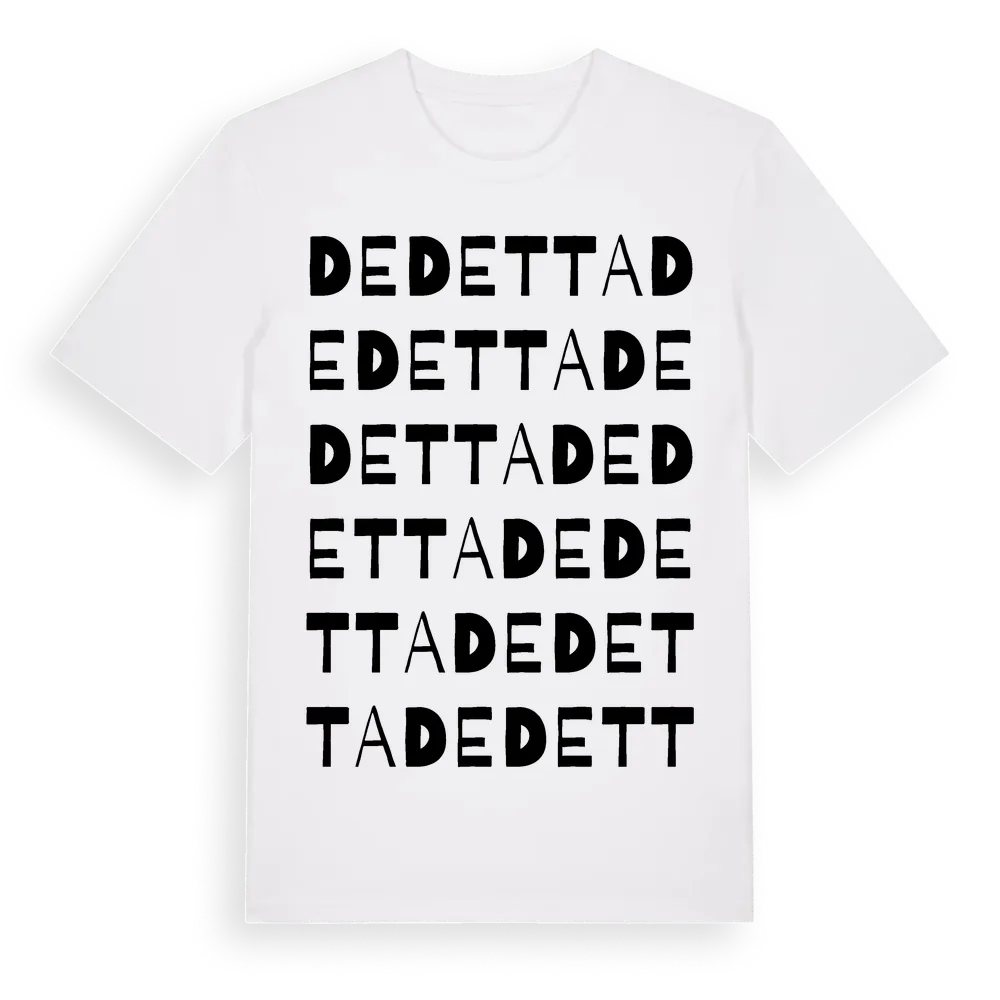 Dedetta ordlek t-shirt är inspirerad av Dedetta i Värmlands län, Sverige. Tröjan är designad för dig som har en speciell koppling till platsen – oavsett om du bor här, har rötterna här eller bara älskar Dedetta.