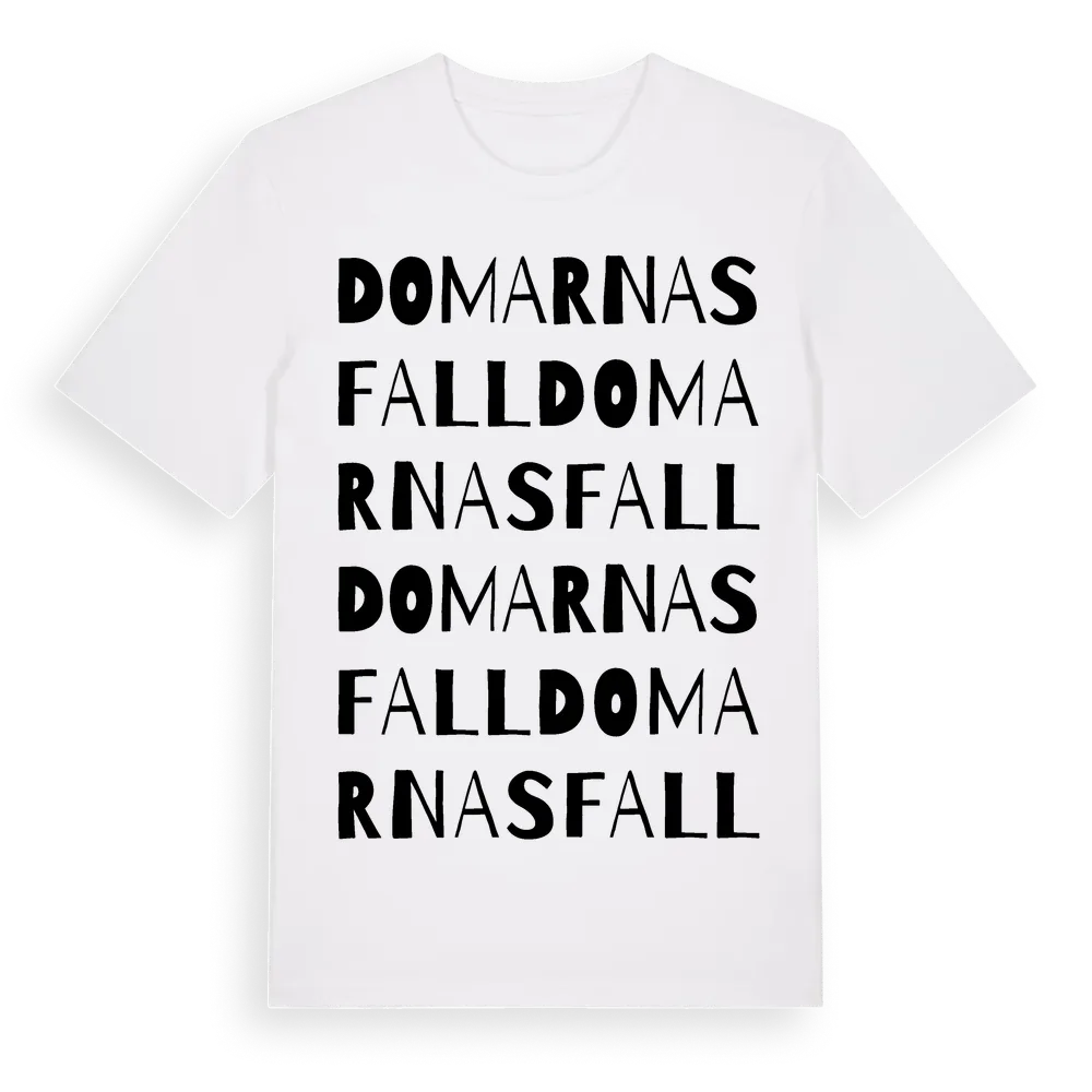 Domarnas Fall ordlek t-shirt är inspirerad av Domarnas Fall i Värmlands län, Sverige. Tröjan är designad för dig som har en speciell koppling till platsen – oavsett om du bor här, har rötterna här eller bara älskar Domarnas Fall.