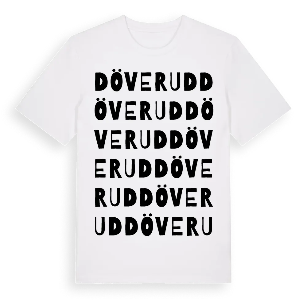 Döverud ordlek t-shirt är inspirerad av Döverud i Värmlands län, Sverige. Tröjan är designad för dig som har en speciell koppling till platsen – oavsett om du bor här, har rötterna här eller bara älskar Döverud.