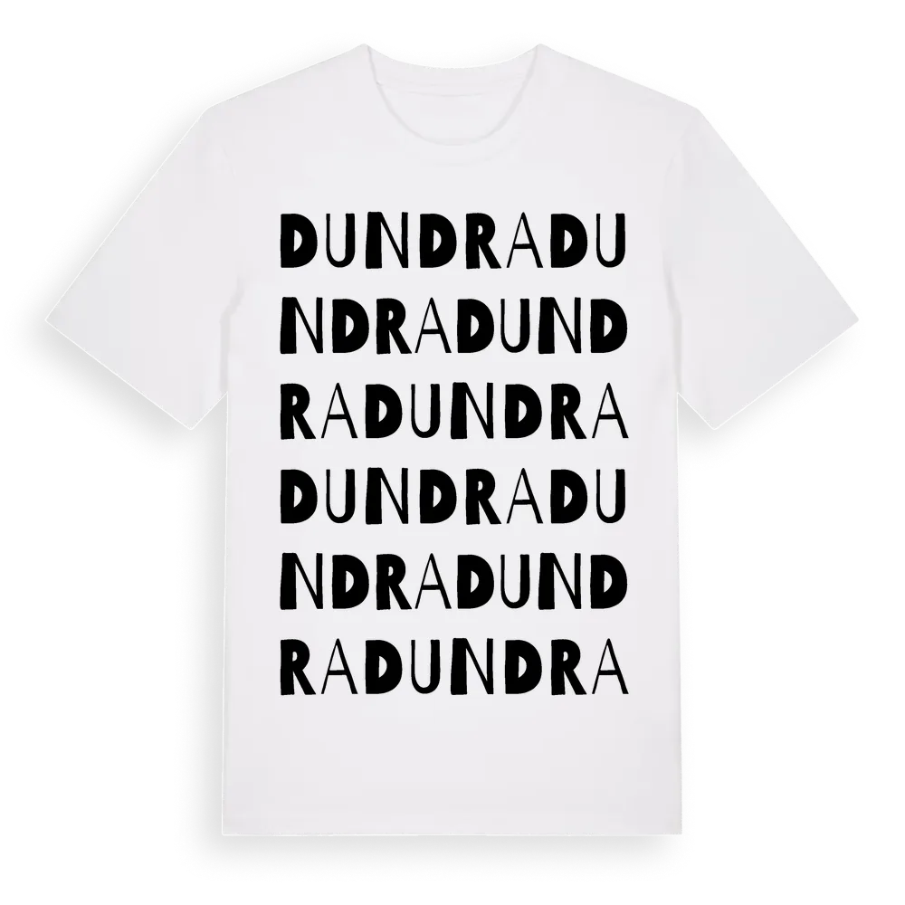 Dundra ordlek t-shirt är inspirerad av Dundra i Värmlands län, Sverige. Tröjan är designad för dig som har en speciell koppling till platsen – oavsett om du bor här, har rötterna här eller bara älskar Dundra.