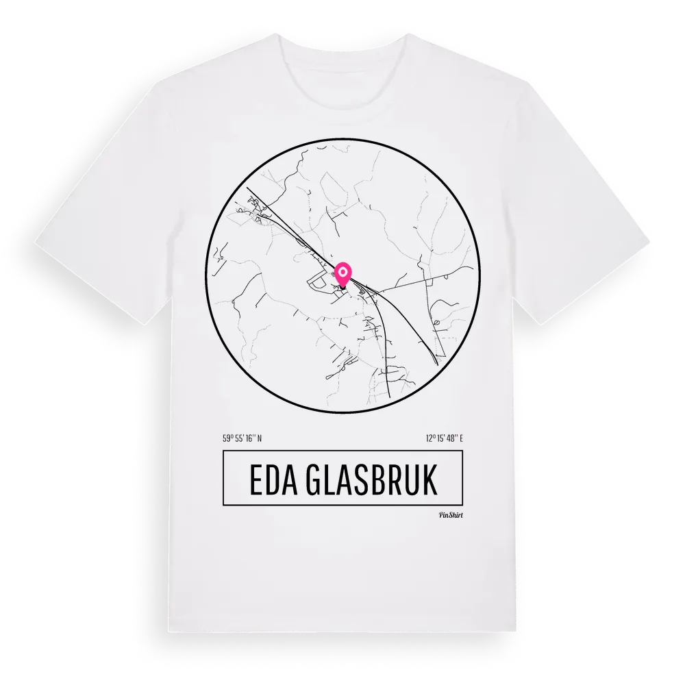 Eda Glasbruk t-shirt är inspirerad av byn Eda Glasbruk i Värmlands län, Sverige. Tröjan är designad för dig som har en speciell koppling till platsen – oavsett om du bor här, har rötterna här eller bara älskar Eda Glasbruk.