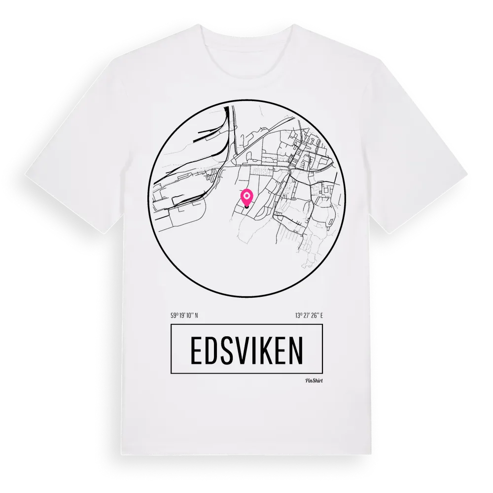 Edsviken t-shirt är inspirerad av stadsdelen Edsviken i Värmlands län, Sverige. Tröjan är designad för dig som har en speciell koppling till platsen – oavsett om du bor här, har rötterna här eller bara älskar Edsviken.