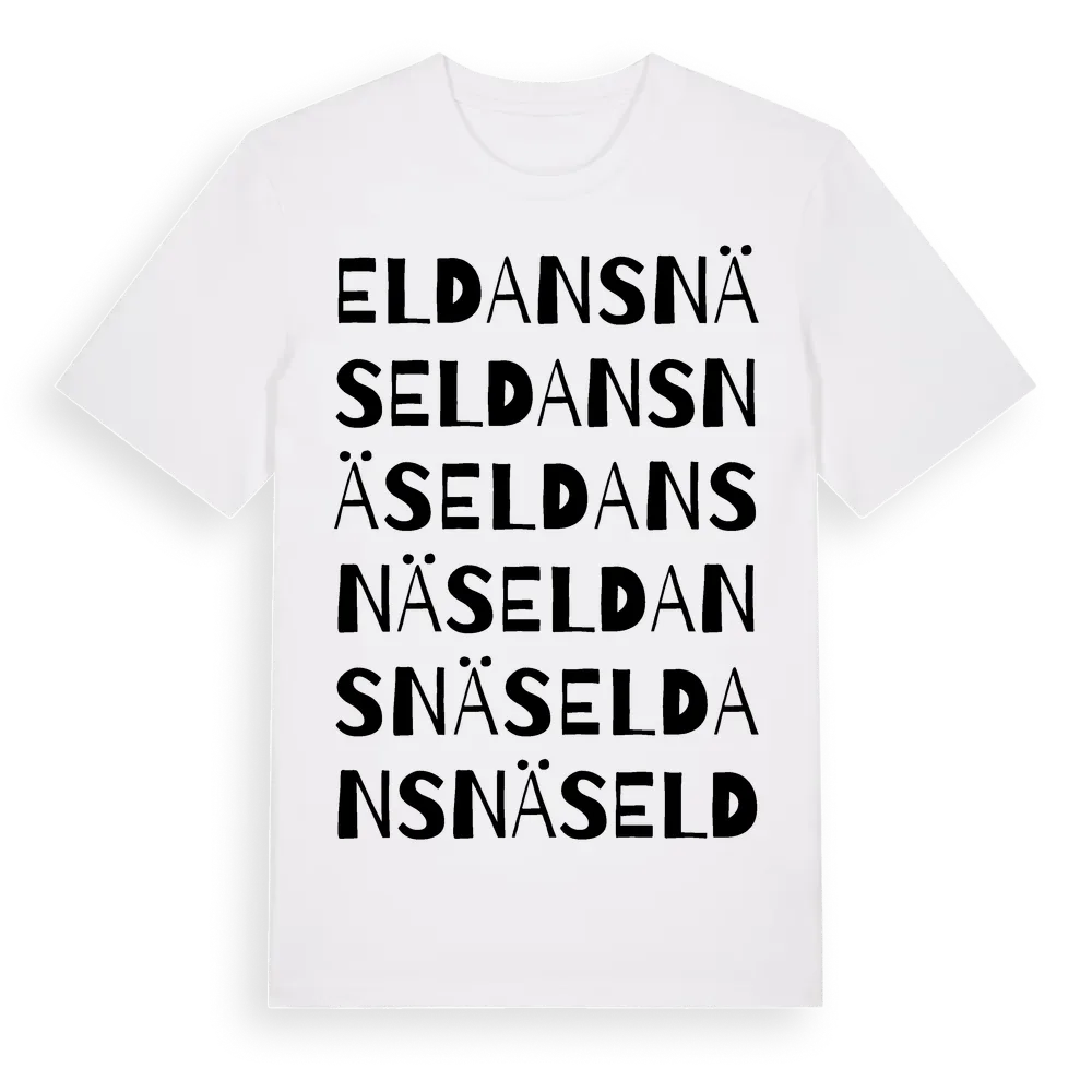 Eldansnäs ordlek t-shirt är inspirerad av Eldansnäs i Värmlands län, Sverige. Tröjan är designad för dig som har en speciell koppling till platsen – oavsett om du bor här, har rötterna här eller bara älskar Eldansnäs.