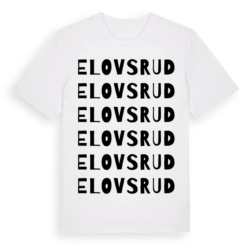 Elovsrud ordlek t-shirt är inspirerad av byn Elovsrud i Värmlands län, Sverige. Tröjan är designad för dig som har en speciell koppling till platsen – oavsett om du bor här, har rötterna här eller bara älskar Elovsrud.