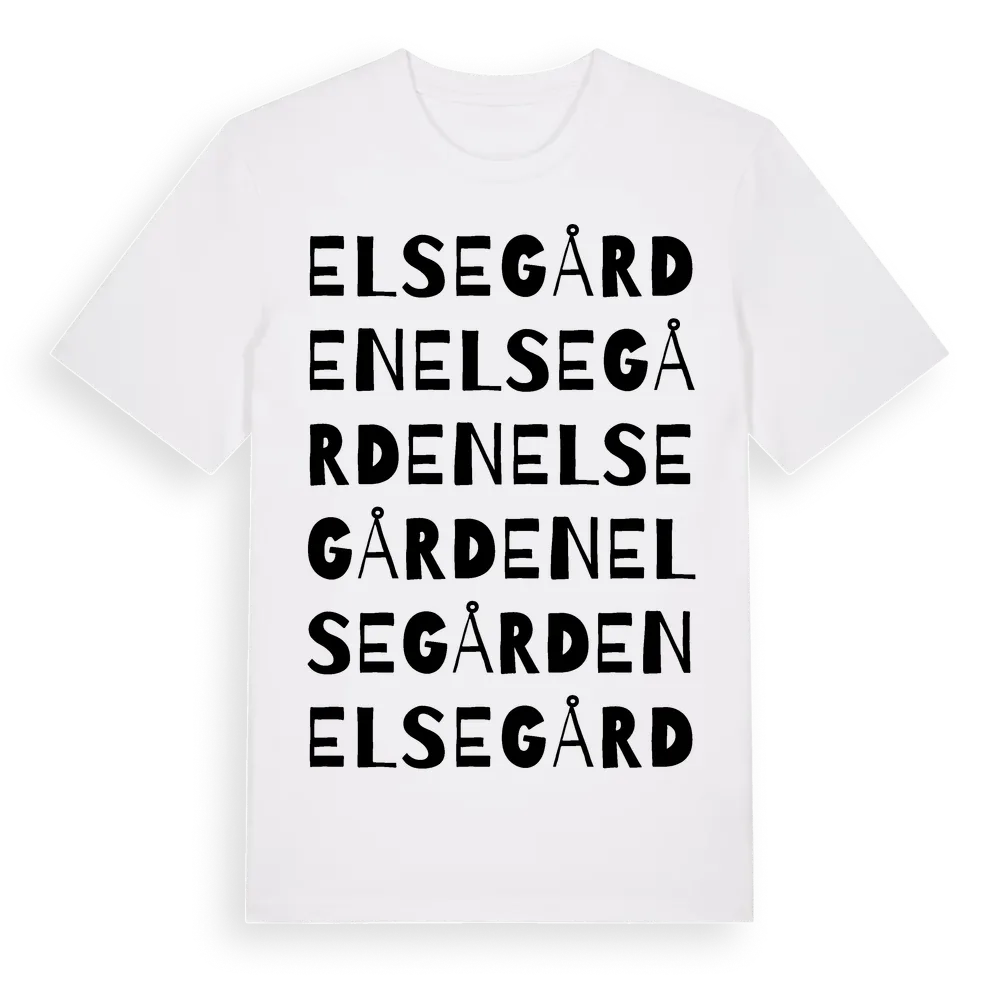 Elsegården ordlek t-shirt är inspirerad av Elsegården i Värmlands län, Sverige. Tröjan är designad för dig som har en speciell koppling till platsen – oavsett om du bor här, har rötterna här eller bara älskar Elsegården.