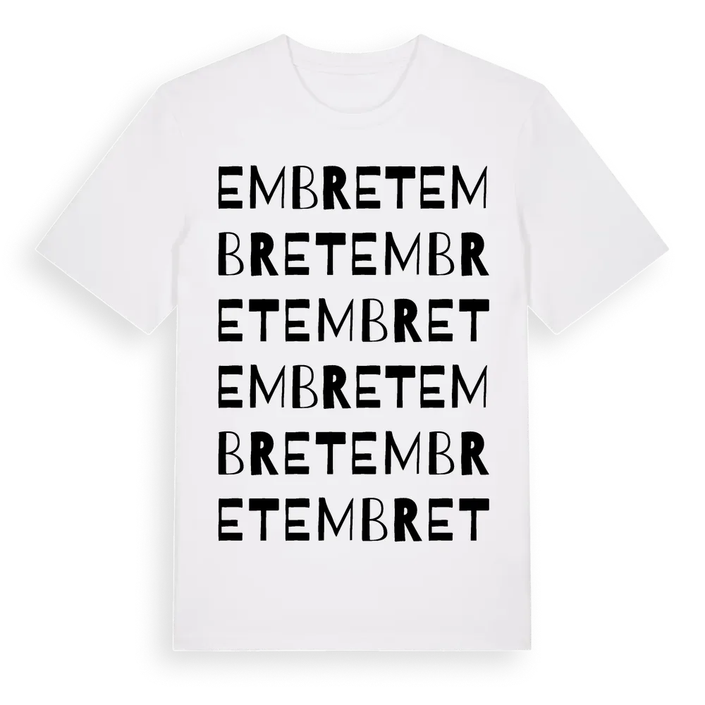 Embret ordlek t-shirt är inspirerad av Embret i Värmlands län, Sverige. Tröjan är designad för dig som har en speciell koppling till platsen – oavsett om du bor här, har rötterna här eller bara älskar Embret.