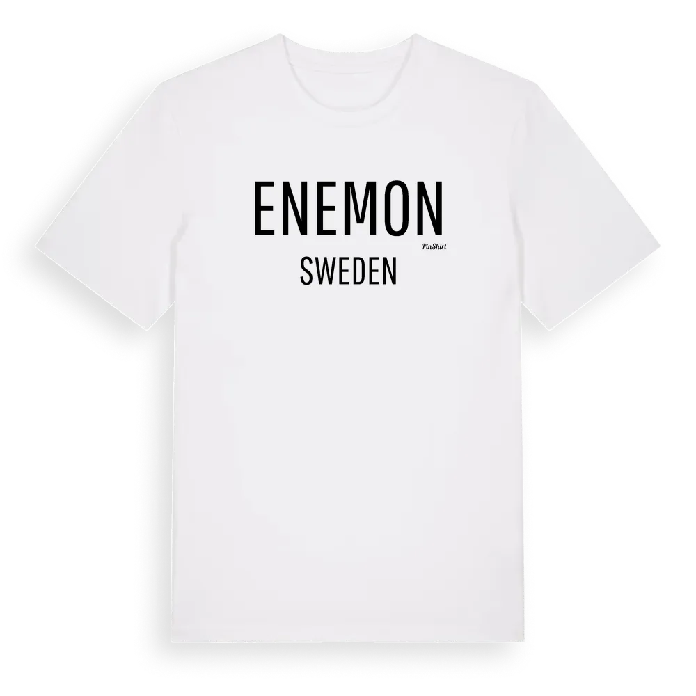 Enemon i Sverige t-shirt är inspirerad av Enemon i Värmlands län, Sverige. Tröjan är designad för dig som har en speciell koppling till platsen – oavsett om du bor här, har rötterna här eller bara älskar Enemon.