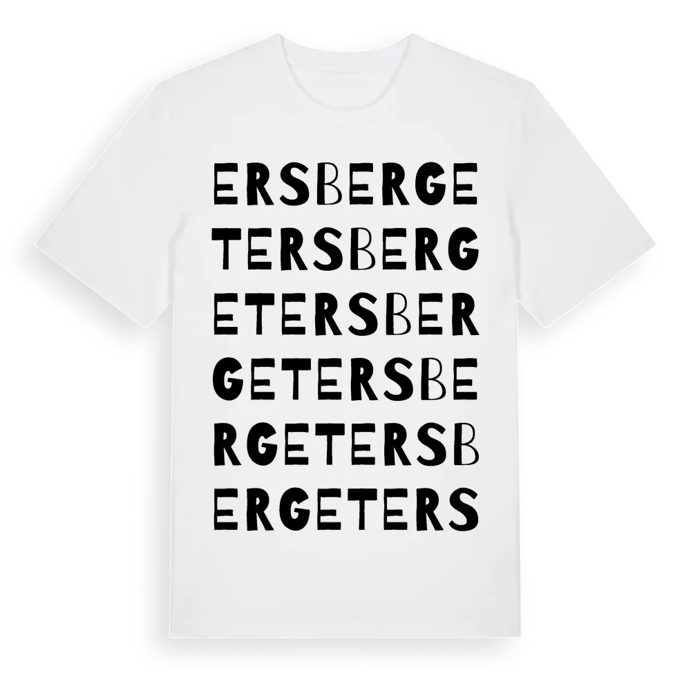 Ersberget ordlek t-shirt är inspirerad av byn Ersberget i Värmlands län, Sverige. Tröjan är designad för dig som har en speciell koppling till platsen – oavsett om du bor här, har rötterna här eller bara älskar Ersberget.