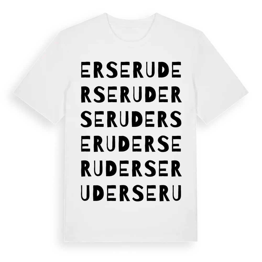 En ordlek byggd på Erseruds namn. Subtilt och klurig – ett motiv som bara de som verkligen känner platsen fullt ut förstår. Premium bomull, unisex – från Erserud i Värmlands län.