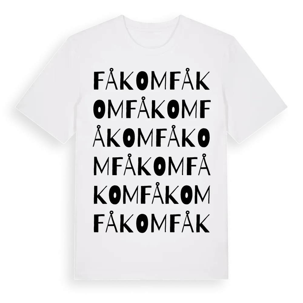 En ordlek byggd på Fåkoms namn. Subtilt och klurig – ett motiv som bara de som verkligen känner platsen fullt ut förstår. Premium bomull, unisex – från Fåkom i Värmlands län.