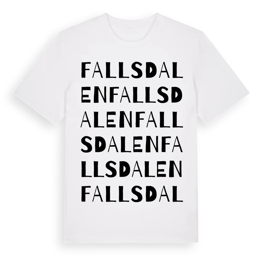 Fallsdalen ordlek t-shirt är inspirerad av Fallsdalen i Värmlands län, Sverige. Tröjan är designad för dig som har en speciell koppling till platsen – oavsett om du bor här, har rötterna här eller bara älskar Fallsdalen.