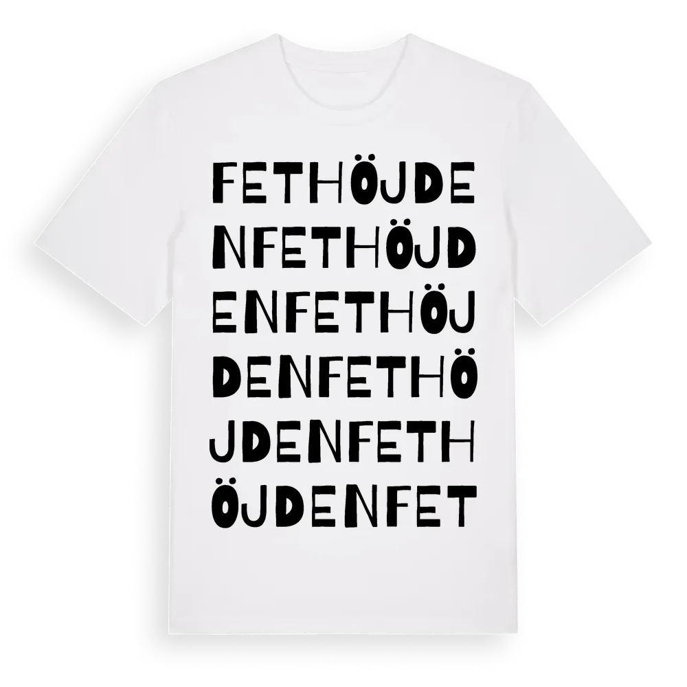 Fethöjden ordlek t-shirt är inspirerad av Fethöjden i Värmlands län, Sverige. Tröjan är designad för dig som har en speciell koppling till platsen – oavsett om du bor här, har rötterna här eller bara älskar Fethöjden.