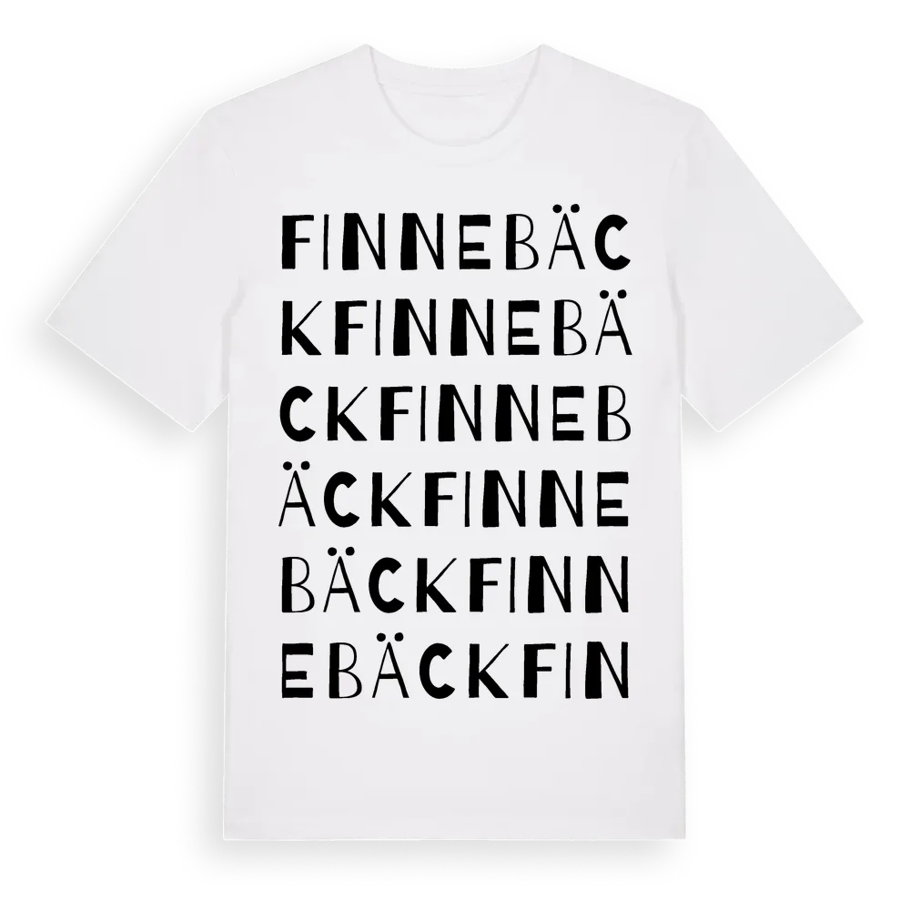 Finnebäck ordlek t-shirt är inspirerad av Finnebäck i Värmlands län, Sverige. Tröjan är designad för dig som har en speciell koppling till platsen – oavsett om du bor här, har rötterna här eller bara älskar Finnebäck.