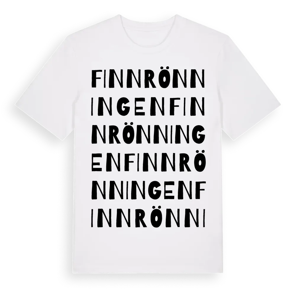 Finnrönningen ordlek t-shirt är inspirerad av Finnrönningen i Värmlands län, Sverige. Tröjan är designad för dig som har en speciell koppling till platsen – oavsett om du bor här, har rötterna här eller bara älskar Finnrönningen.