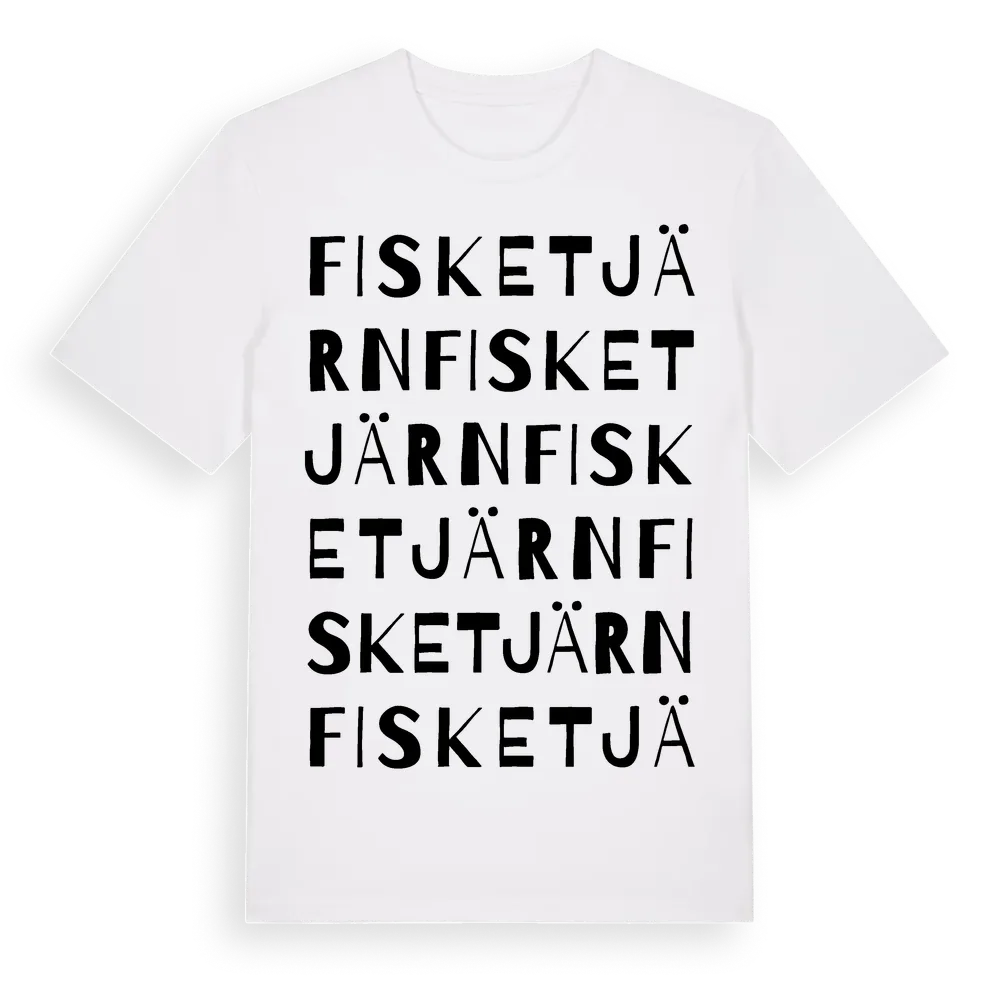 Fisketjärn ordlek t-shirt är inspirerad av Fisketjärn i Värmlands län, Sverige. Tröjan är designad för dig som har en speciell koppling till platsen – oavsett om du bor här, har rötterna här eller bara älskar Fisketjärn.
