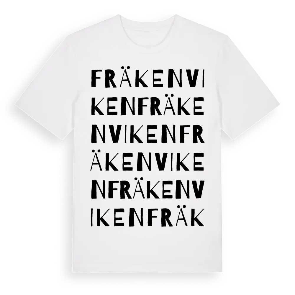 Fräkenviken ordlek t-shirt är inspirerad av Fräkenviken i Värmlands län, Sverige. Tröjan är designad för dig som har en speciell koppling till platsen – oavsett om du bor här, har rötterna här eller bara älskar Fräkenviken.