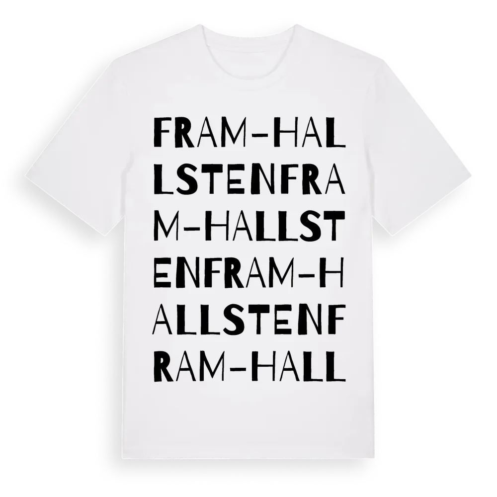 Fram-Hallsten ordlek t-shirt är inspirerad av Fram-Hallsten i Värmlands län, Sverige. Tröjan är designad för dig som har en speciell koppling till platsen – oavsett om du bor här, har rötterna här eller bara älskar Fram-Hallsten.