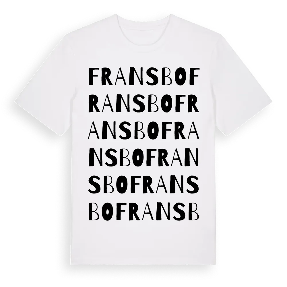 Fransbo ordlek t-shirt är inspirerad av Fransbo i Värmlands län, Sverige. Tröjan är designad för dig som har en speciell koppling till platsen – oavsett om du bor här, har rötterna här eller bara älskar Fransbo.