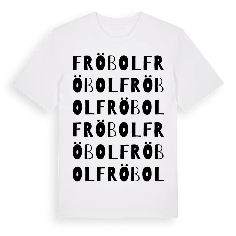 Fröbol ordlek t-shirt är inspirerad av byn Fröbol i Värmlands län, Sverige. Tröjan är designad för dig som har en speciell koppling till platsen – oavsett om du bor här, har rötterna här eller bara älskar Fröbol.
