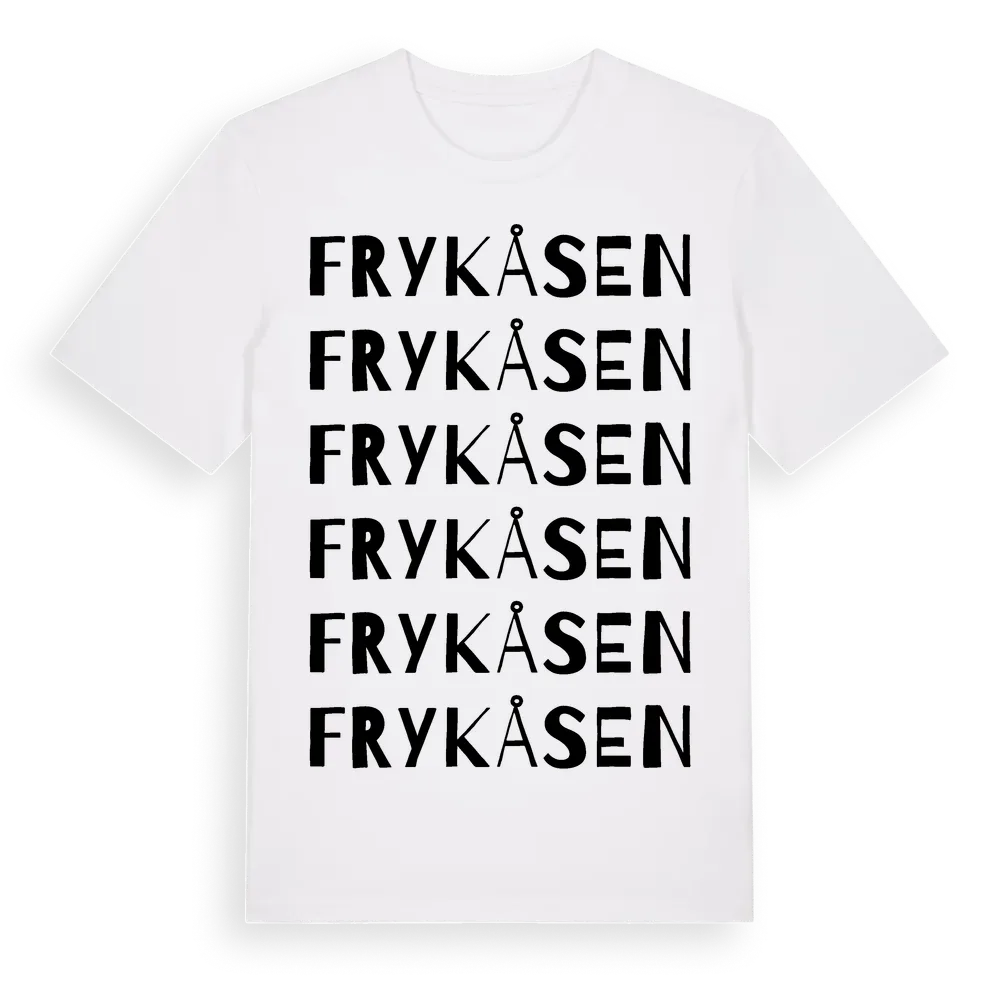 Frykåsen ordlek t-shirt är inspirerad av byn Frykåsen i Värmlands län, Sverige. Tröjan är designad för dig som har en speciell koppling till platsen – oavsett om du bor här, har rötterna här eller bara älskar Frykåsen.
