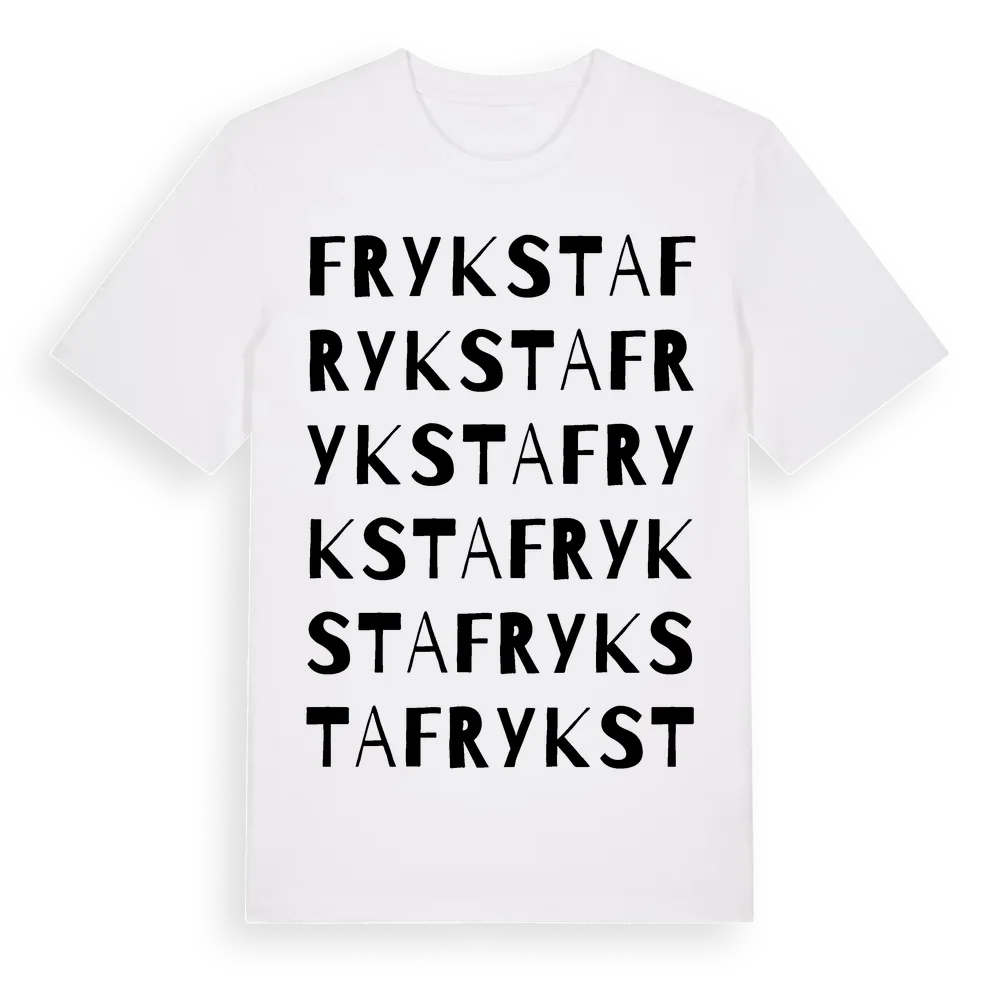 Fryksta ordlek t-shirt är inspirerad av byn Fryksta i Värmlands län, Sverige. Tröjan är designad för dig som har en speciell koppling till platsen – oavsett om du bor här, har rötterna här eller bara älskar Fryksta.