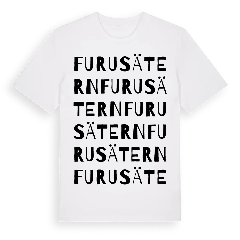 Furusätern ordlek t-shirt är inspirerad av Furusätern i Värmlands län, Sverige. Tröjan är designad för dig som har en speciell koppling till platsen – oavsett om du bor här, har rötterna här eller bara älskar Furusätern.
