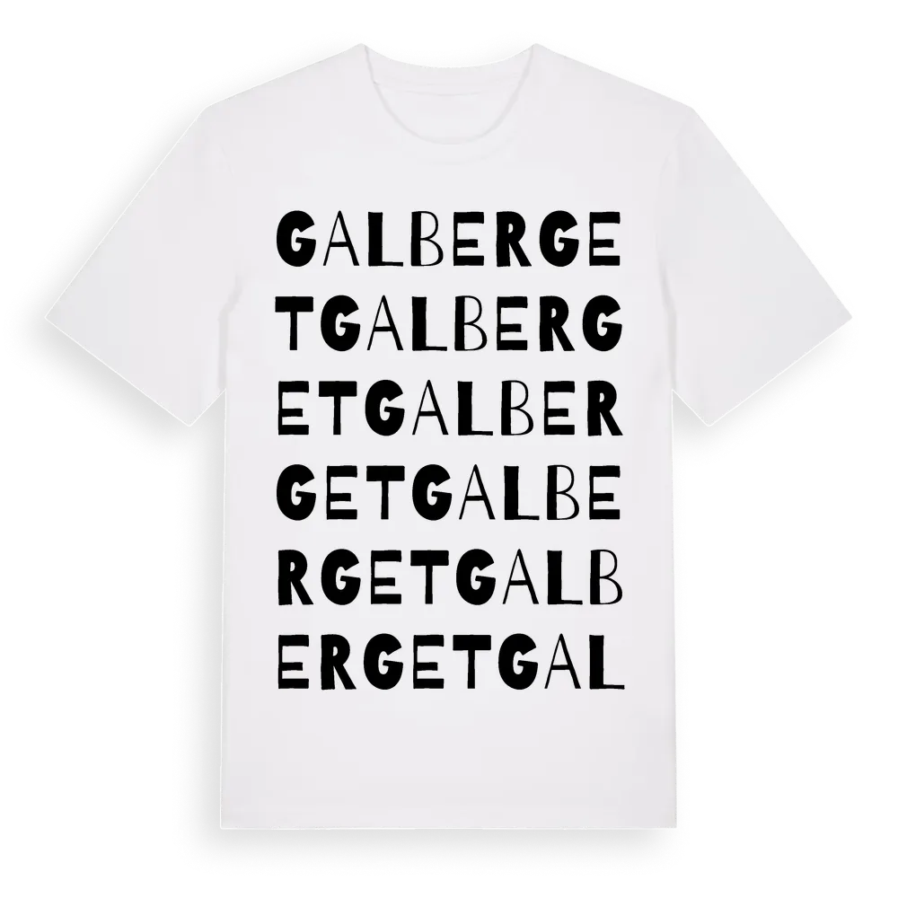 Galberget ordlek t-shirt är inspirerad av Galberget i Värmlands län, Sverige. Tröjan är designad för dig som har en speciell koppling till platsen – oavsett om du bor här, har rötterna här eller bara älskar Galberget.
