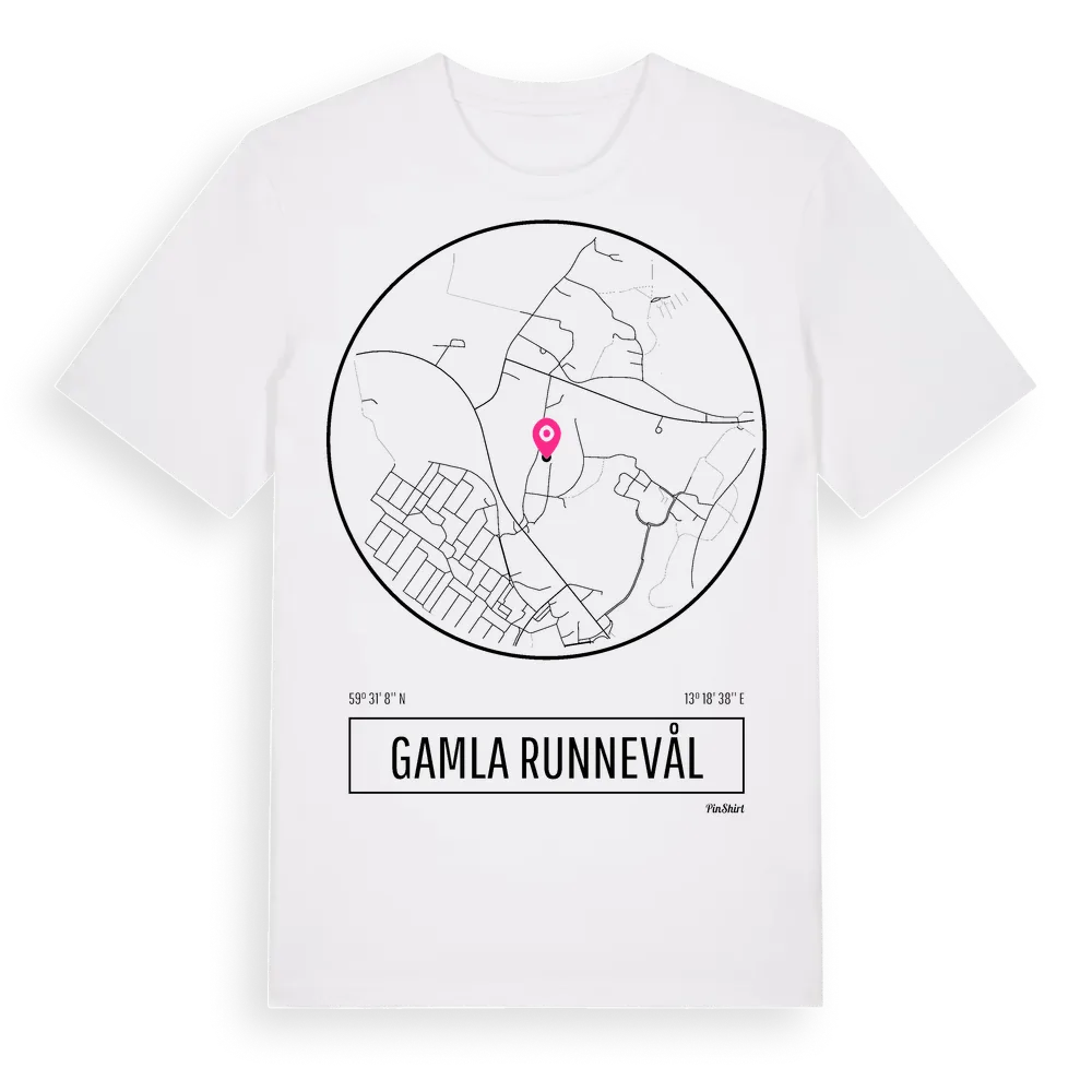 Gamla Runnevål t-shirt är inspirerad av stadsdelen Gamla Runnevål i Värmlands län, Sverige. Tröjan är designad för dig som har en speciell koppling till platsen – oavsett om du bor här, har rötterna här eller bara älskar Gamla Runnevål.