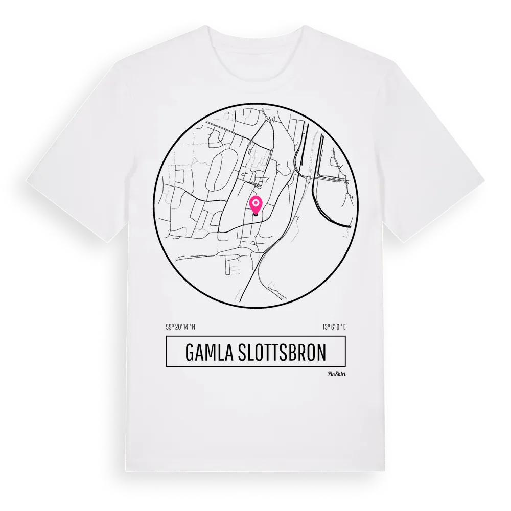 Gamla Slottsbron t-shirt är inspirerad av stadsdelen Gamla Slottsbron i Värmlands län, Sverige. Tröjan är designad för dig som har en speciell koppling till platsen – oavsett om du bor här, har rötterna här eller bara älskar Gamla Slottsbron.