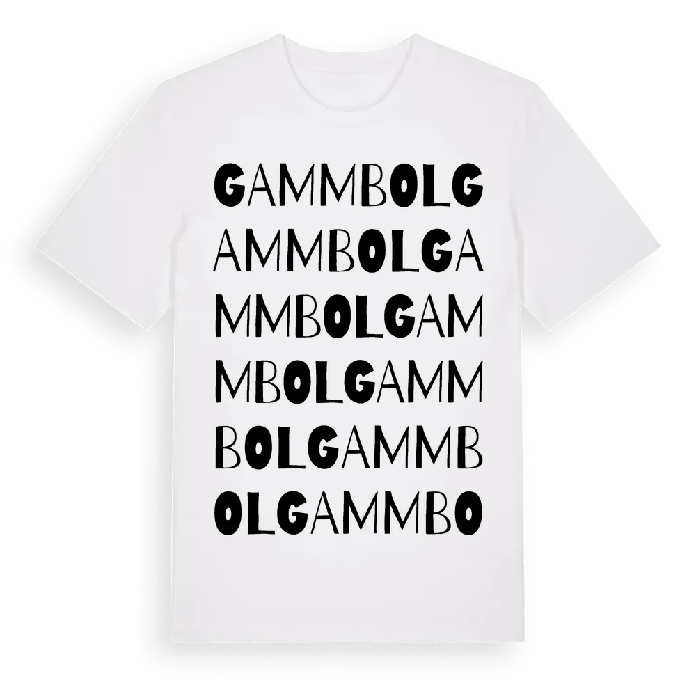 Gammbol ordlek t-shirt är inspirerad av Gammbol i Värmlands län, Sverige. Tröjan är designad för dig som har en speciell koppling till platsen – oavsett om du bor här, har rötterna här eller bara älskar Gammbol.