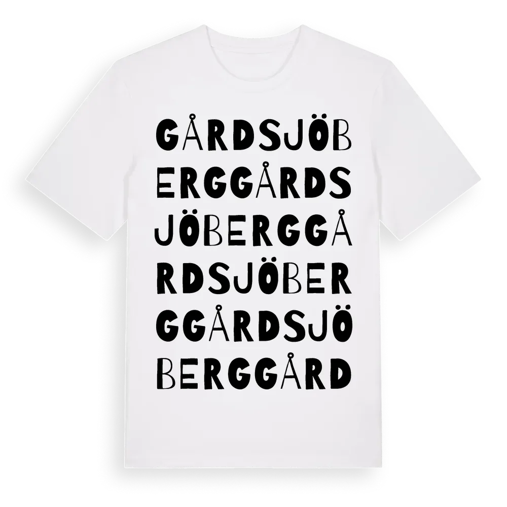 Gårdsjöberg ordlek t-shirt är inspirerad av Gårdsjöberg i Värmlands län, Sverige. Tröjan är designad för dig som har en speciell koppling till platsen – oavsett om du bor här, har rötterna här eller bara älskar Gårdsjöberg.