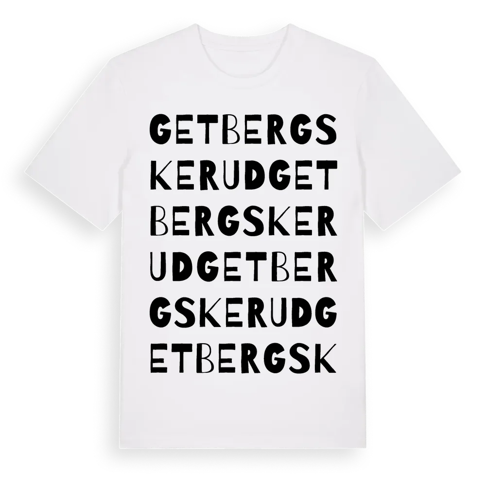 Getbergskerud ordlek t-shirt är inspirerad av Getbergskerud i Värmlands län, Sverige. Tröjan är designad för dig som har en speciell koppling till platsen – oavsett om du bor här, har rötterna här eller bara älskar Getbergskerud.