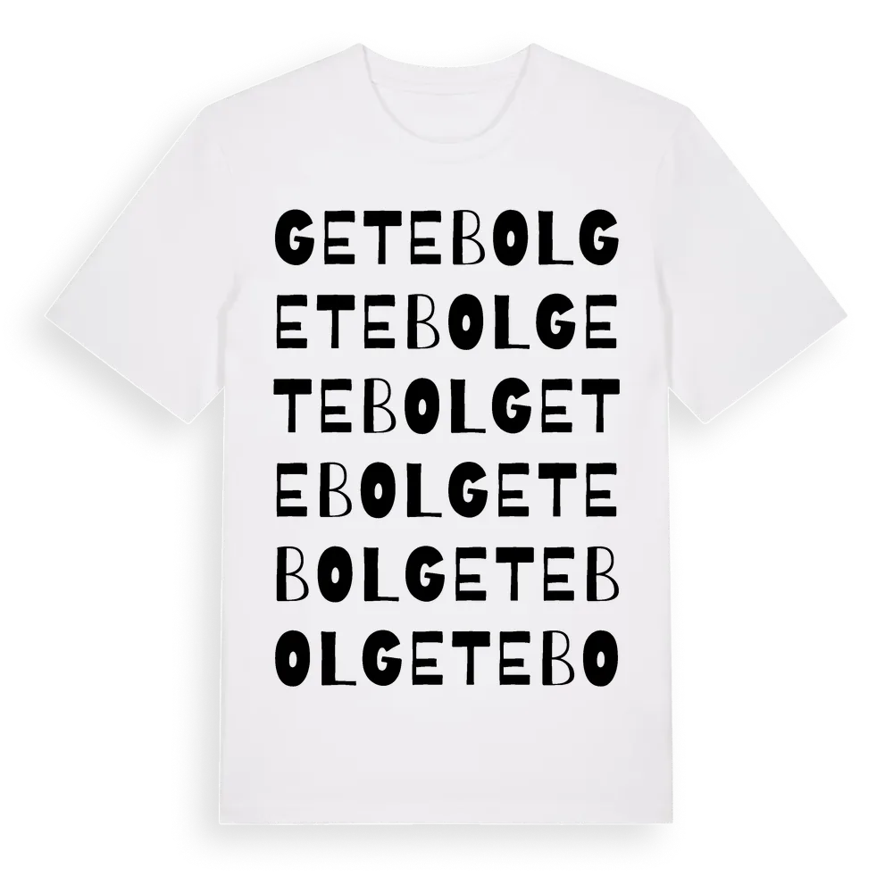 Getebol ordlek t-shirt är inspirerad av byn Getebol i Värmlands län, Sverige. Tröjan är designad för dig som har en speciell koppling till platsen – oavsett om du bor här, har rötterna här eller bara älskar Getebol.