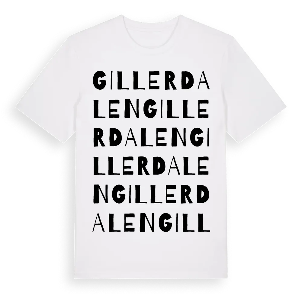 Gillerdalen ordlek t-shirt är inspirerad av Gillerdalen i Värmlands län, Sverige. Tröjan är designad för dig som har en speciell koppling till platsen – oavsett om du bor här, har rötterna här eller bara älskar Gillerdalen.