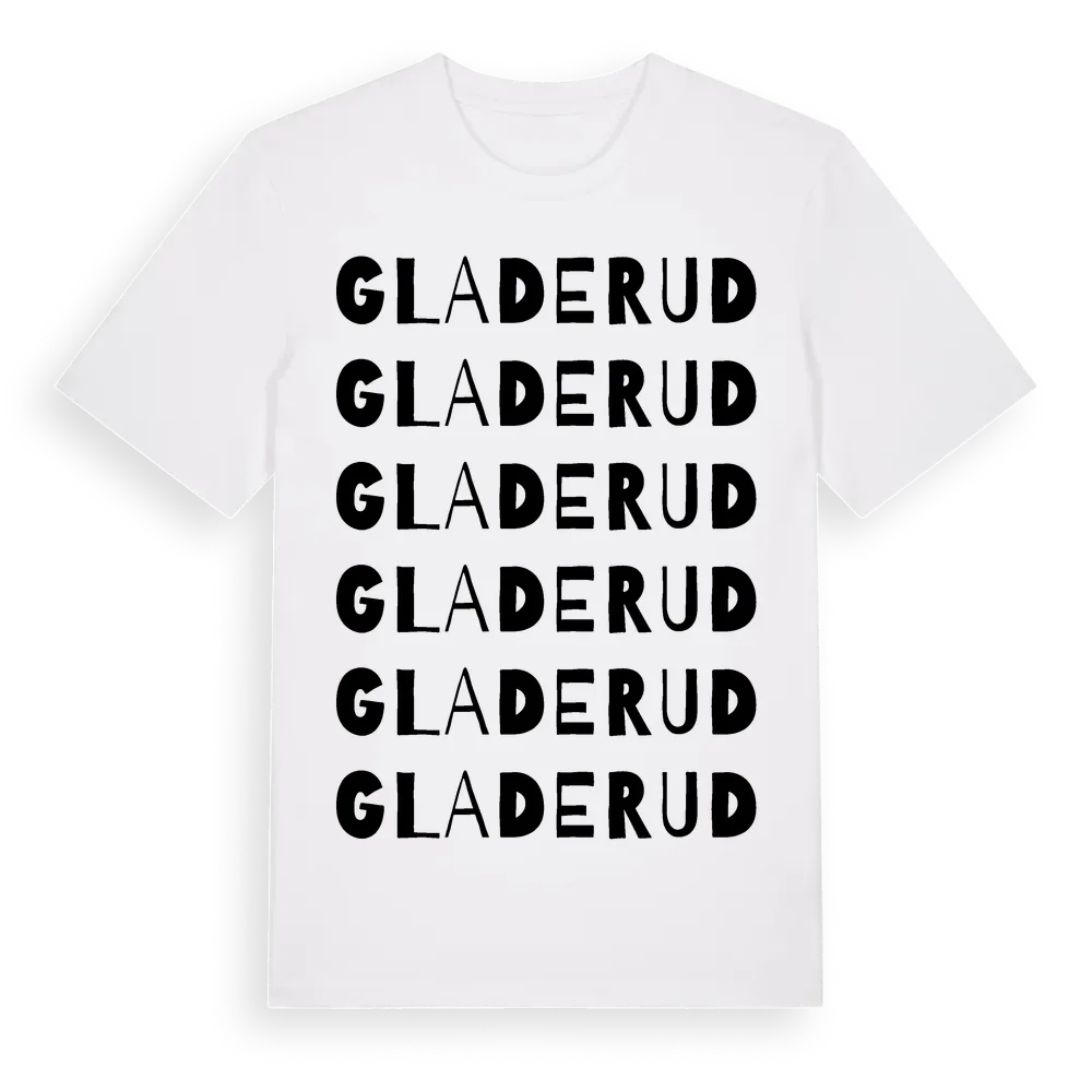 Gladerud ordlek t-shirt är inspirerad av Gladerud i Värmlands län, Sverige. Tröjan är designad för dig som har en speciell koppling till platsen – oavsett om du bor här, har rötterna här eller bara älskar Gladerud.