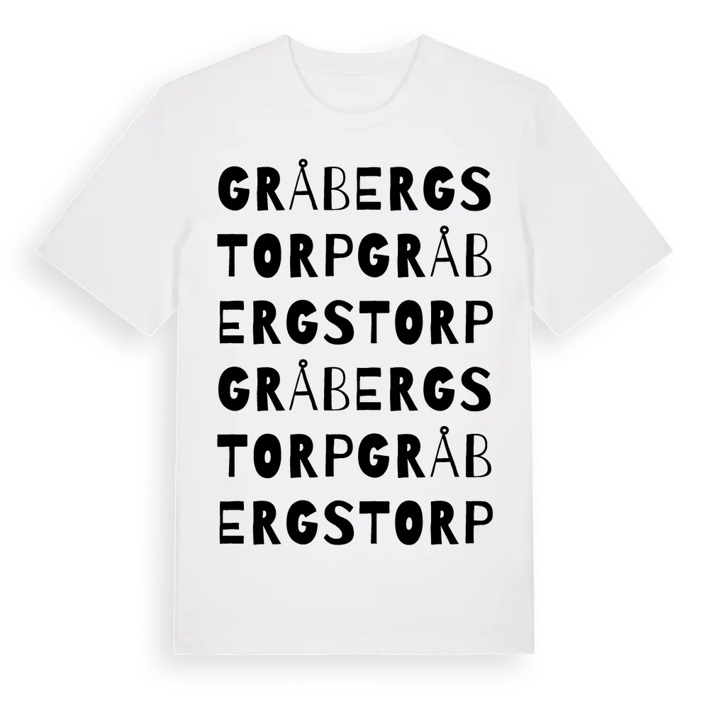 Gråbergstorp ordlek t-shirt är inspirerad av Gråbergstorp i Värmlands län, Sverige. Tröjan är designad för dig som har en speciell koppling till platsen – oavsett om du bor här, har rötterna här eller bara älskar Gråbergstorp.