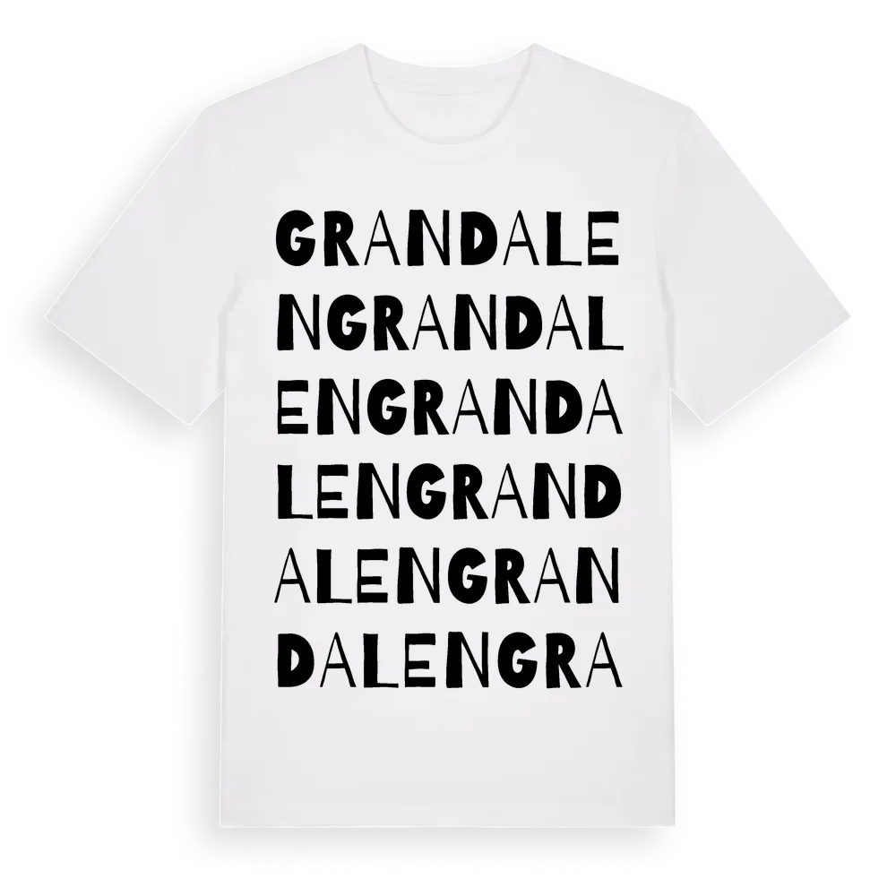 Grandalen ordlek t-shirt är inspirerad av Grandalen i Värmlands län, Sverige. Tröjan är designad för dig som har en speciell koppling till platsen – oavsett om du bor här, har rötterna här eller bara älskar Grandalen.