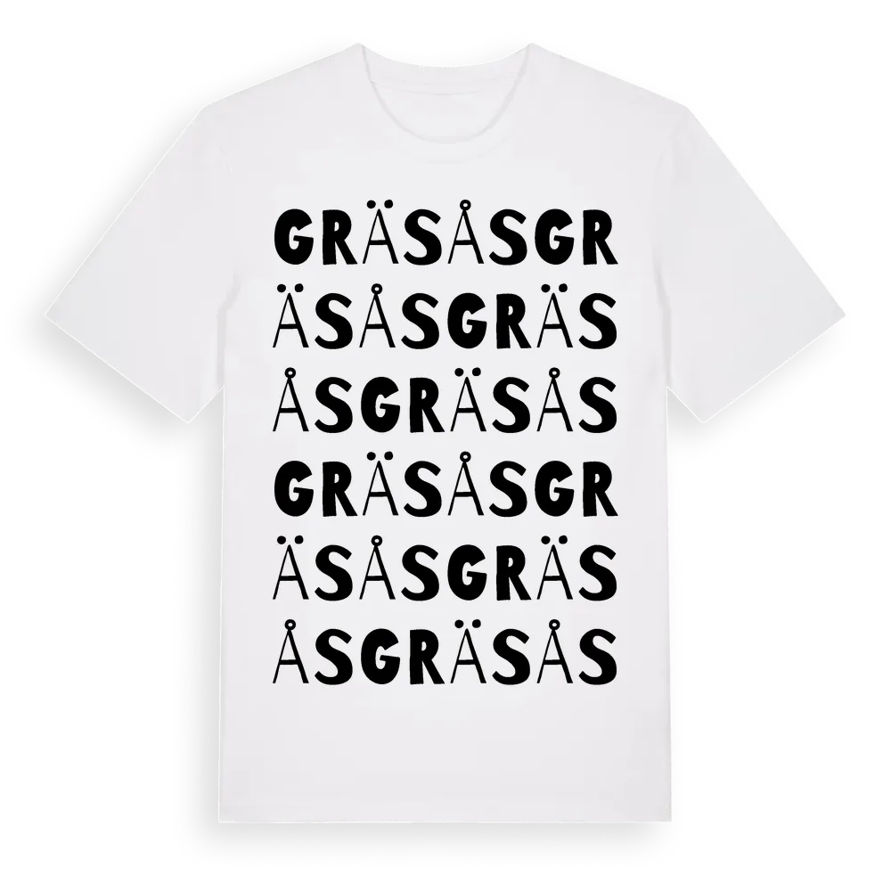 Gräsås ordlek t-shirt är inspirerad av byn Gräsås i Värmlands län, Sverige. Tröjan är designad för dig som har en speciell koppling till platsen – oavsett om du bor här, har rötterna här eller bara älskar Gräsås.