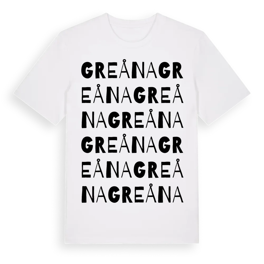 Greåna ordlek t-shirt är inspirerad av Greåna i Värmlands län, Sverige. Tröjan är designad för dig som har en speciell koppling till platsen – oavsett om du bor här, har rötterna här eller bara älskar Greåna.