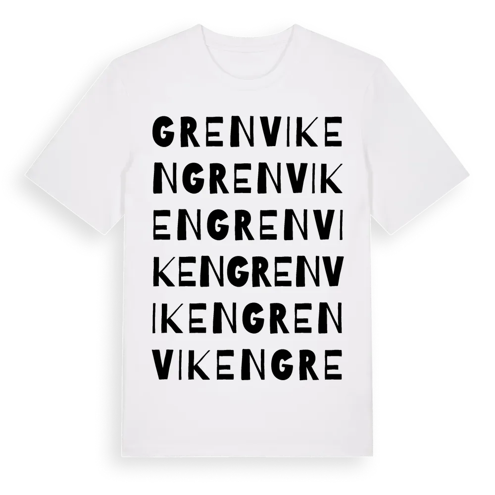 Grenviken ordlek t-shirt är inspirerad av Grenviken i Värmlands län, Sverige. Tröjan är designad för dig som har en speciell koppling till platsen – oavsett om du bor här, har rötterna här eller bara älskar Grenviken.
