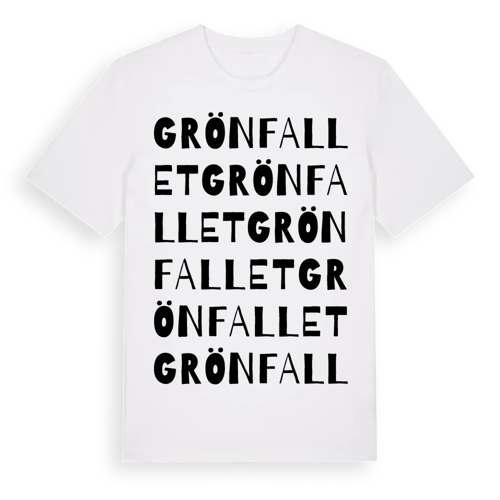 Grönfallet ordlek t-shirt är inspirerad av Grönfallet i Värmlands län, Sverige. Tröjan är designad för dig som har en speciell koppling till platsen – oavsett om du bor här, har rötterna här eller bara älskar Grönfallet.