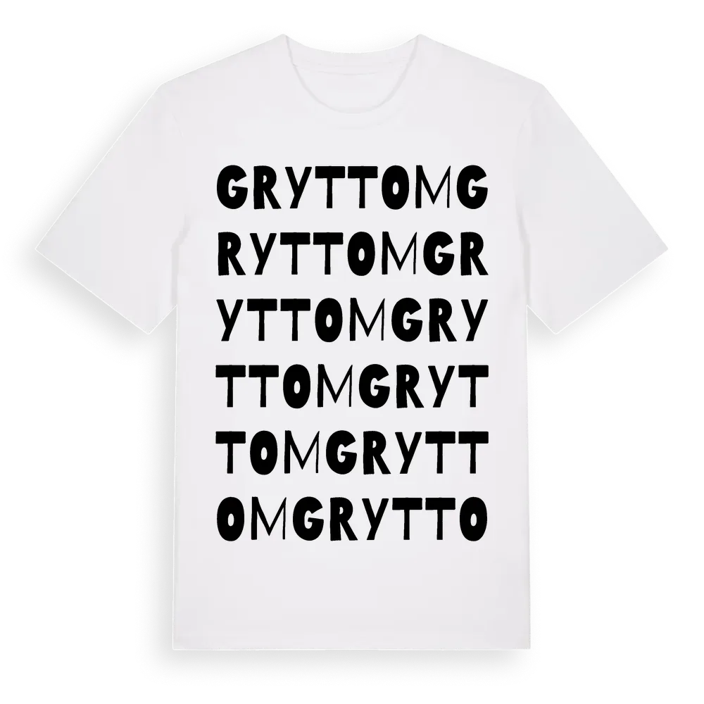 Gryttom ordlek t-shirt är inspirerad av byn Gryttom i Värmlands län, Sverige. Tröjan är designad för dig som har en speciell koppling till platsen – oavsett om du bor här, har rötterna här eller bara älskar Gryttom.