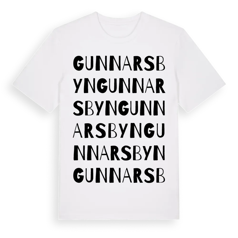 Gunnarsbyn ordlek t-shirt är inspirerad av Gunnarsbyn i Värmlands län, Sverige. Tröjan är designad för dig som har en speciell koppling till platsen – oavsett om du bor här, har rötterna här eller bara älskar Gunnarsbyn.