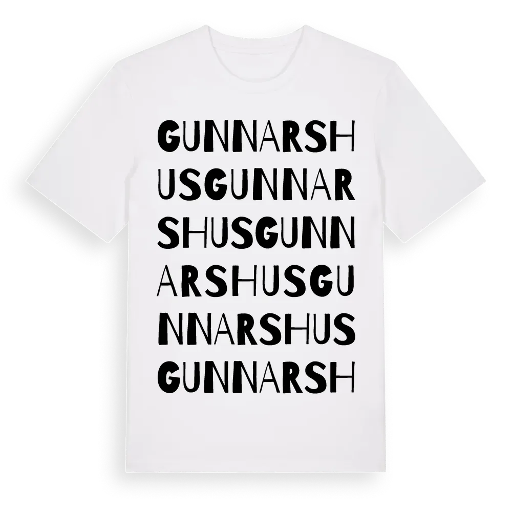 Gunnarshus ordlek t-shirt är inspirerad av Gunnarshus i Värmlands län, Sverige. Tröjan är designad för dig som har en speciell koppling till platsen – oavsett om du bor här, har rötterna här eller bara älskar Gunnarshus.