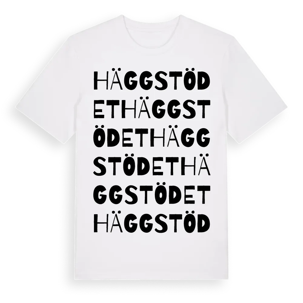 Häggstödet ordlek t-shirt är inspirerad av Häggstödet i Värmlands län, Sverige. Tröjan är designad för dig som har en speciell koppling till platsen – oavsett om du bor här, har rötterna här eller bara älskar Häggstödet.