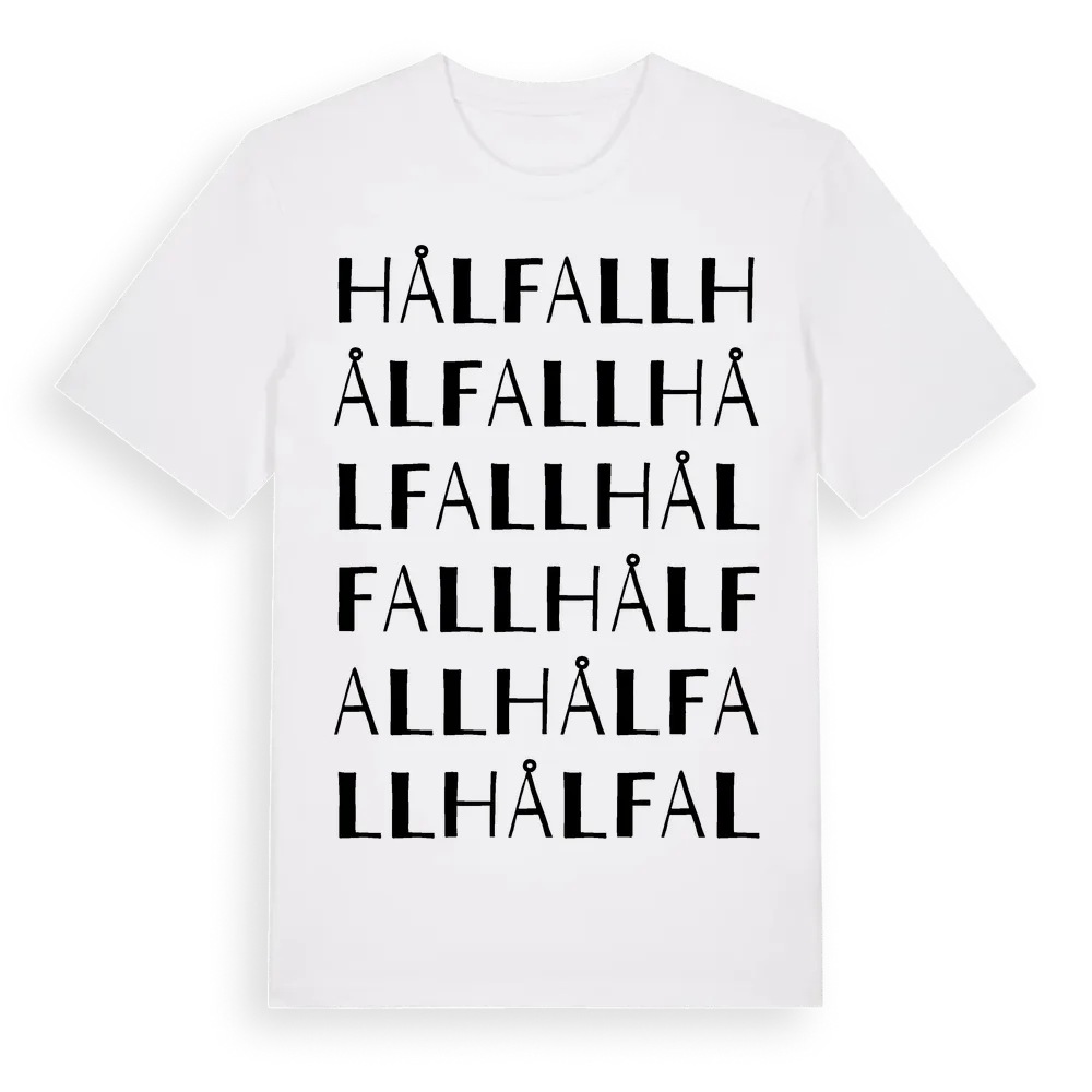 Hålfall ordlek t-shirt är inspirerad av Hålfall i Värmlands län, Sverige. Tröjan är designad för dig som har en speciell koppling till platsen – oavsett om du bor här, har rötterna här eller bara älskar Hålfall.
