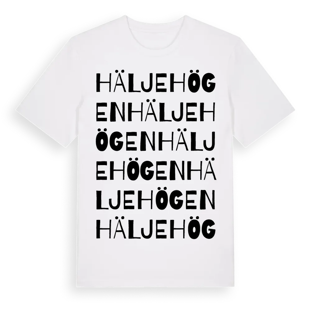 Häljehögen ordlek t-shirt är inspirerad av Häljehögen i Värmlands län, Sverige. Tröjan är designad för dig som har en speciell koppling till platsen – oavsett om du bor här, har rötterna här eller bara älskar Häljehögen.