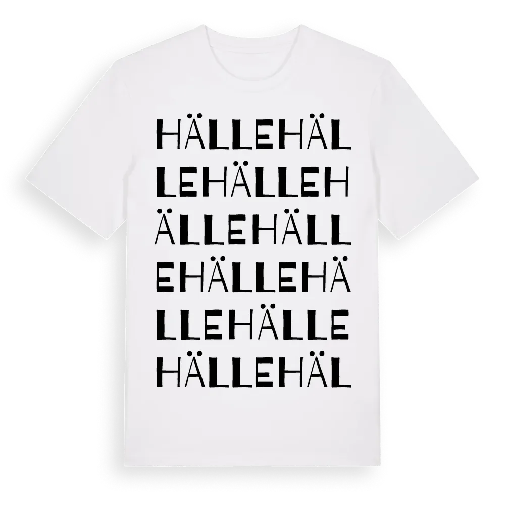 Hälle ordlek t-shirt är inspirerad av byn Hälle i Värmlands län, Sverige. Tröjan är designad för dig som har en speciell koppling till platsen – oavsett om du bor här, har rötterna här eller bara älskar Hälle.